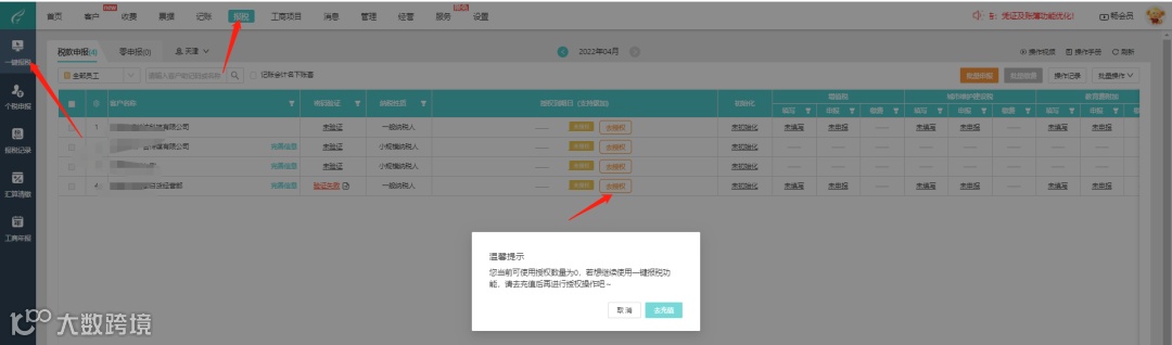 点击工作台-报税一键报税-授权