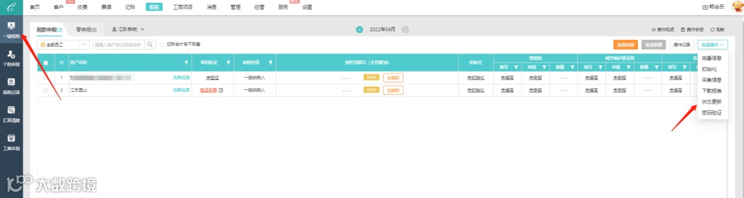 点击工作台-报税-一键报税-状态更新