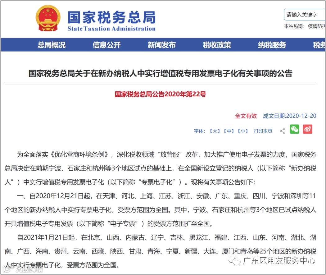 国家税务局《关于在新办纳税人中施行增值税专用发票电子化有关事项》
