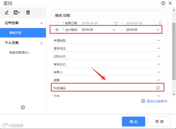 第3步:确认费用类科目后,可以在【凭证管理】界面,修改【科目编码】为收入类科目进行查询。