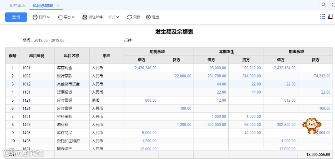 第1步:进入【总账】模块,查询科目余额表,并且与利润表数据逐一核对,查询错误取值科目。