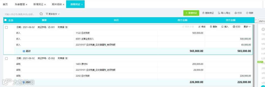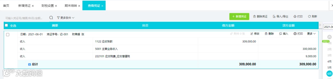 ②在2021年发生相关业务凭证如下,销项和进项差额为39,000.00元,即本月应交未交增值税金额为39,000.00元:
