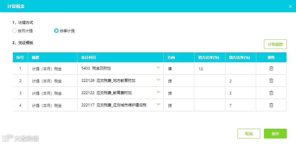小规模按季计提税金
