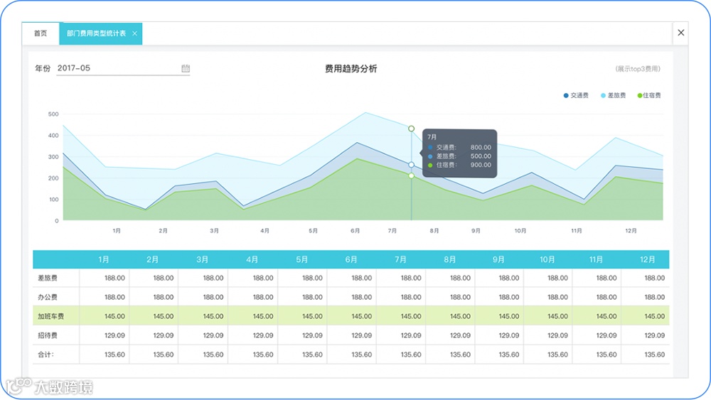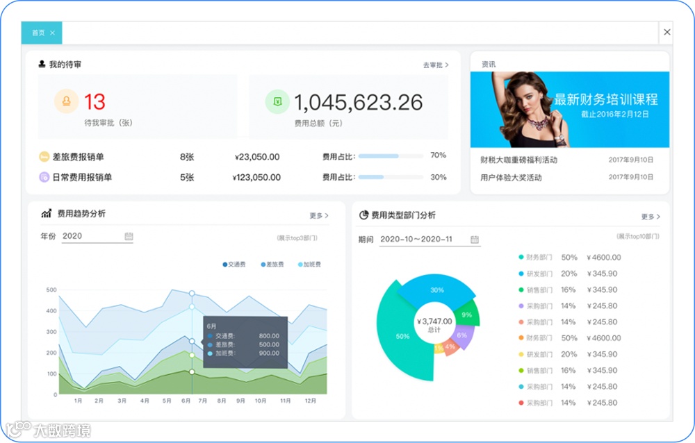 支持费用精细统计,趋势分析,费用支出使用情况实时在线统计与分析,帮助企业实时了解企业经营情况、决策运筹帷幄