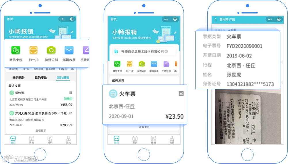 多渠道、多方式票据采集,票据轻松管理,报销单智能生成,无需贴票,一键提交,审批进度时实跟踪