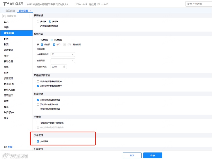 T+欠款管理版本支持:T+15.0和T+Cloud