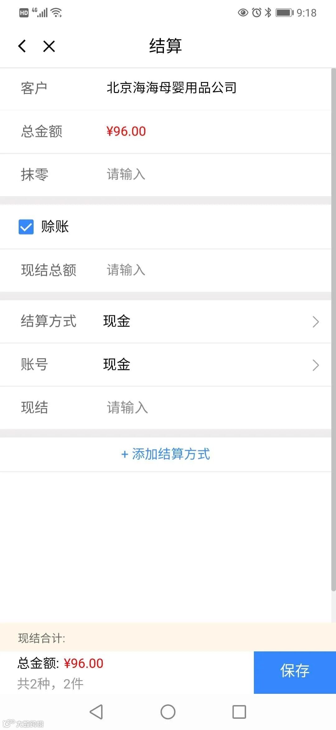 1、业务员拜访客户下单,结算时,根据实际情况选择结算方式。现场收款,录入现结金额。未收款选择赊账,收取纸质欠条。