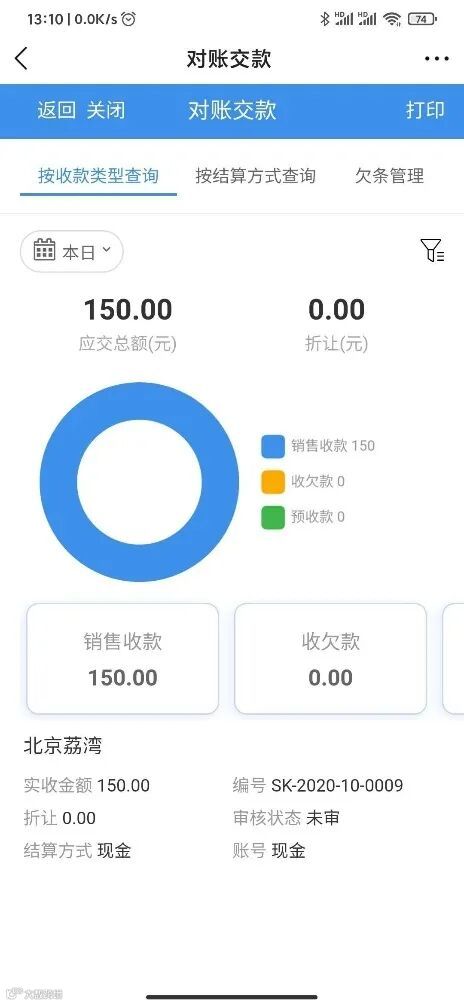 若当天仍旧没收到款项,则应交历史欠条信息中会有所反馈;