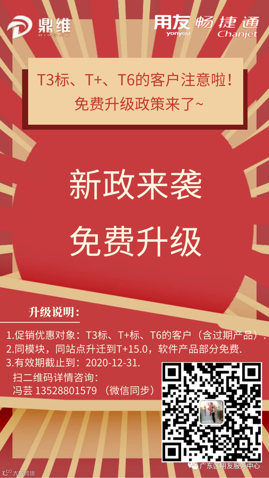 截止到2020年12月31日前,T3标、T+标、T6的产品(含过期产品),同模块、同站点升迁到T+15.0,软件产品部分免费!