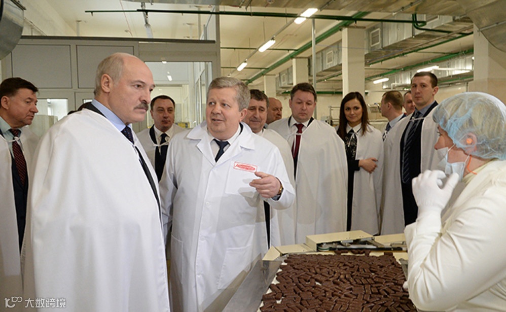 ▲白俄罗斯总统卢卡申科视察康美纳卡巧克力厂
