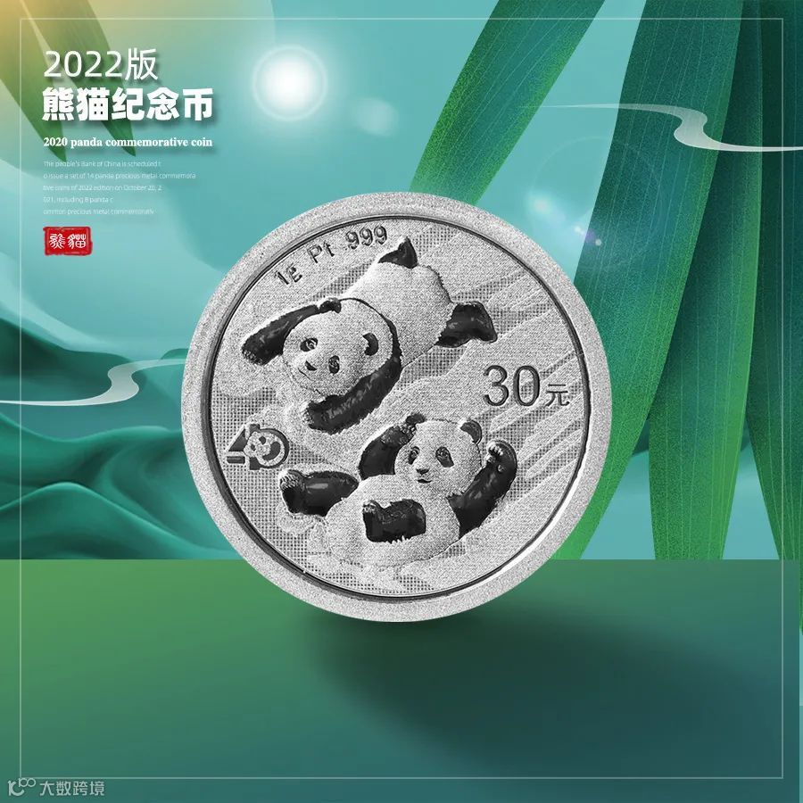 2022版熊猫铂币是我国货币史上首枚1克铂金熊猫币、首枚30元面额的熊猫币,具有双龙头地位。