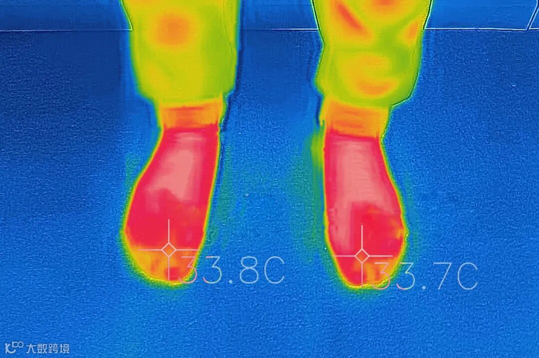 左侧穿布鞋的脚还保持在33.8摄氏度
