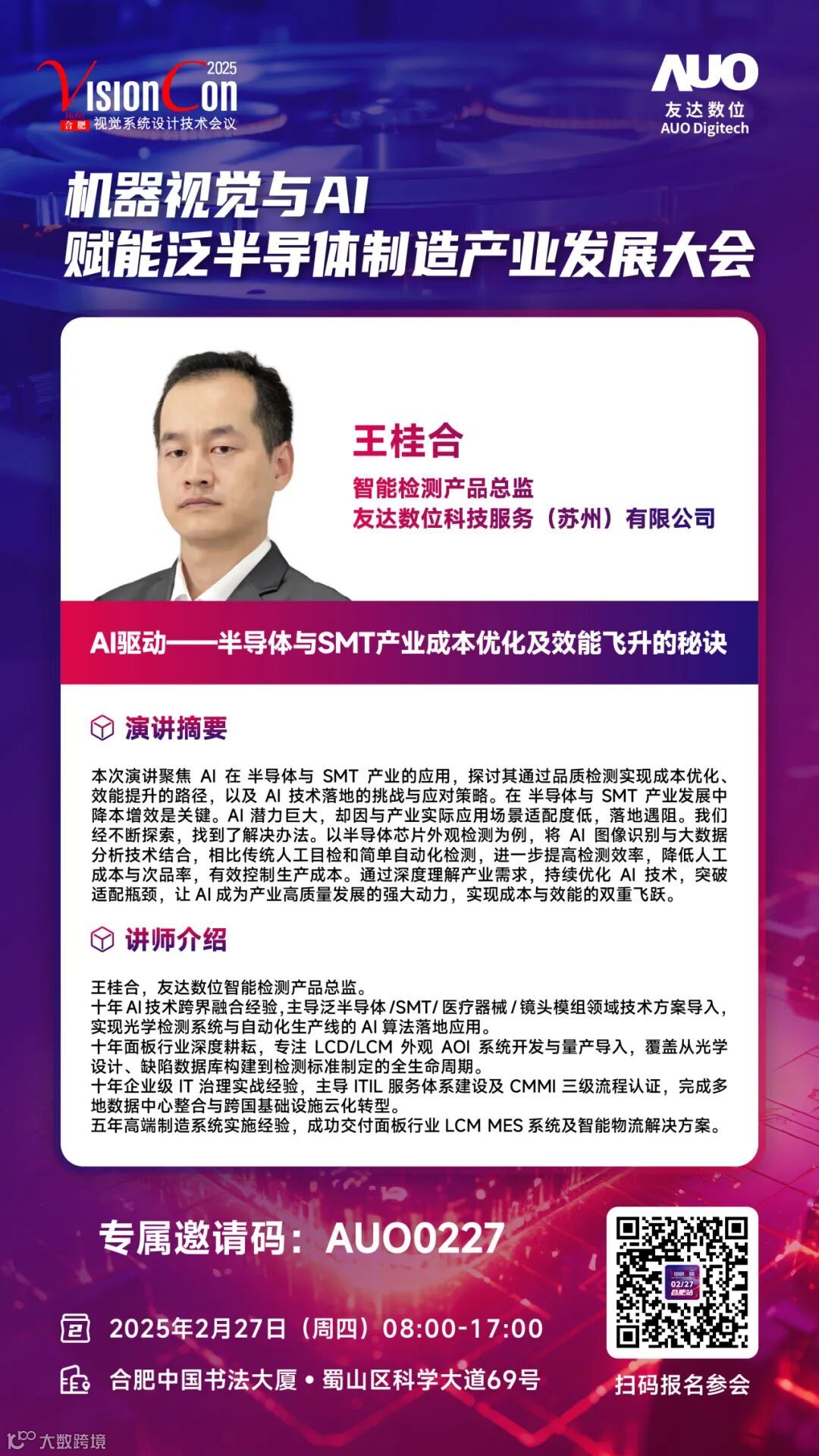 专属邀请码【AUO0227】,扫描海报二维码即可报名参会,期待与您相聚合肥,共襄盛举!