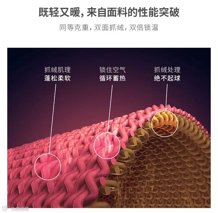 ▲双面抓绒 保暖性能翻倍