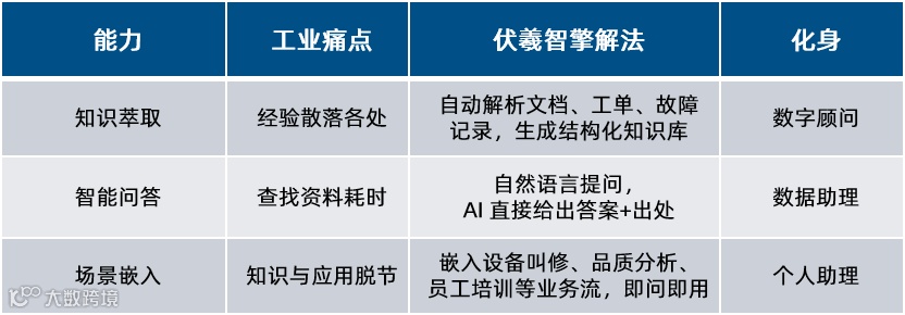 伏羲智擎的应用早已渗透到工业全流程,从设备维修、品质管理到办公提效,处处都是它的用武之地: