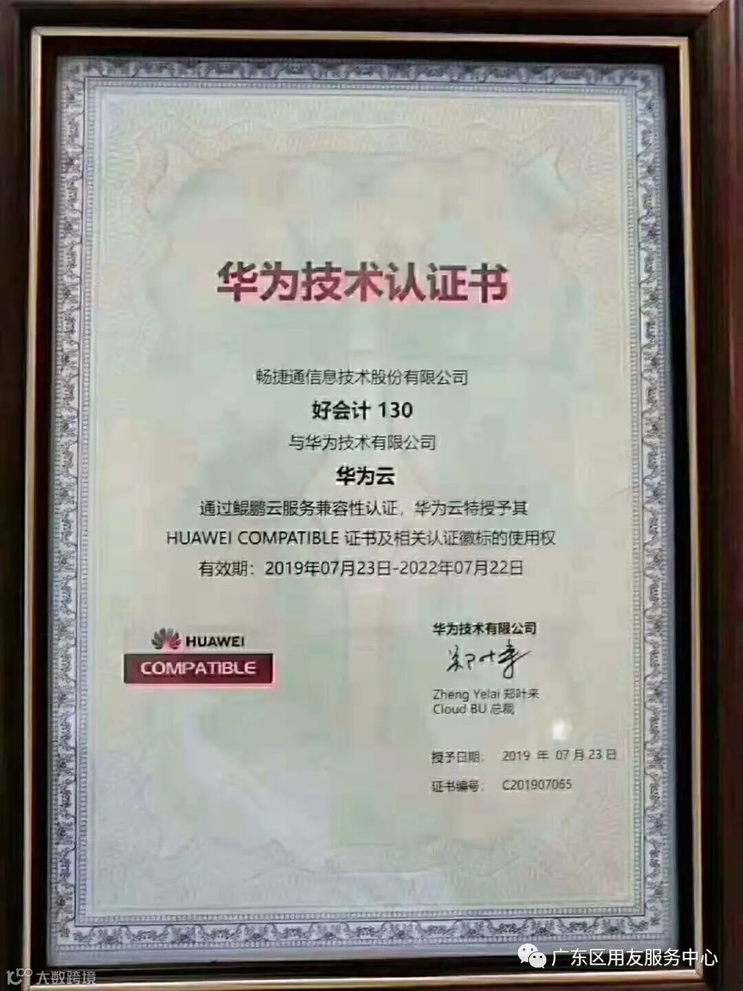上个月华为授予用友畅捷通好会计的技术认证书~~好会计真是棒棒哒~~