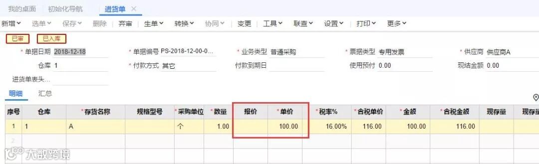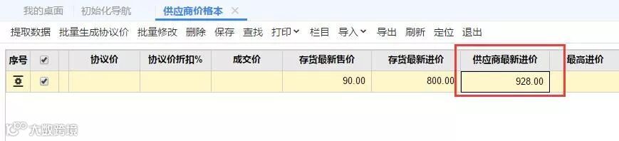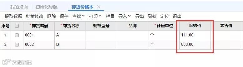 2、从存货价格本中取最新进价带入到采购单据的单价/含税单价中。