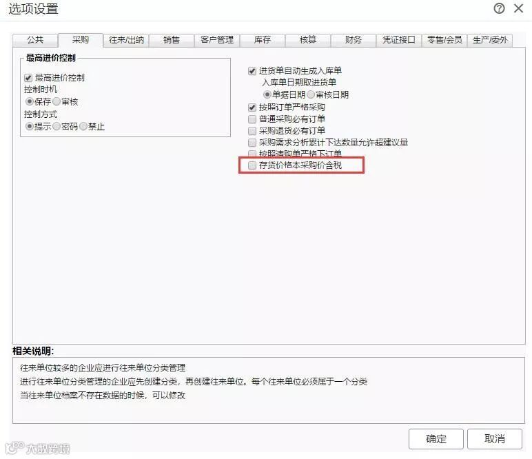 2、系统管理-采购选项中,【存货价格本采购价含税】选项,默认不勾选,表示价格带入到单价,如果勾选了,则价格带入到含税单价。