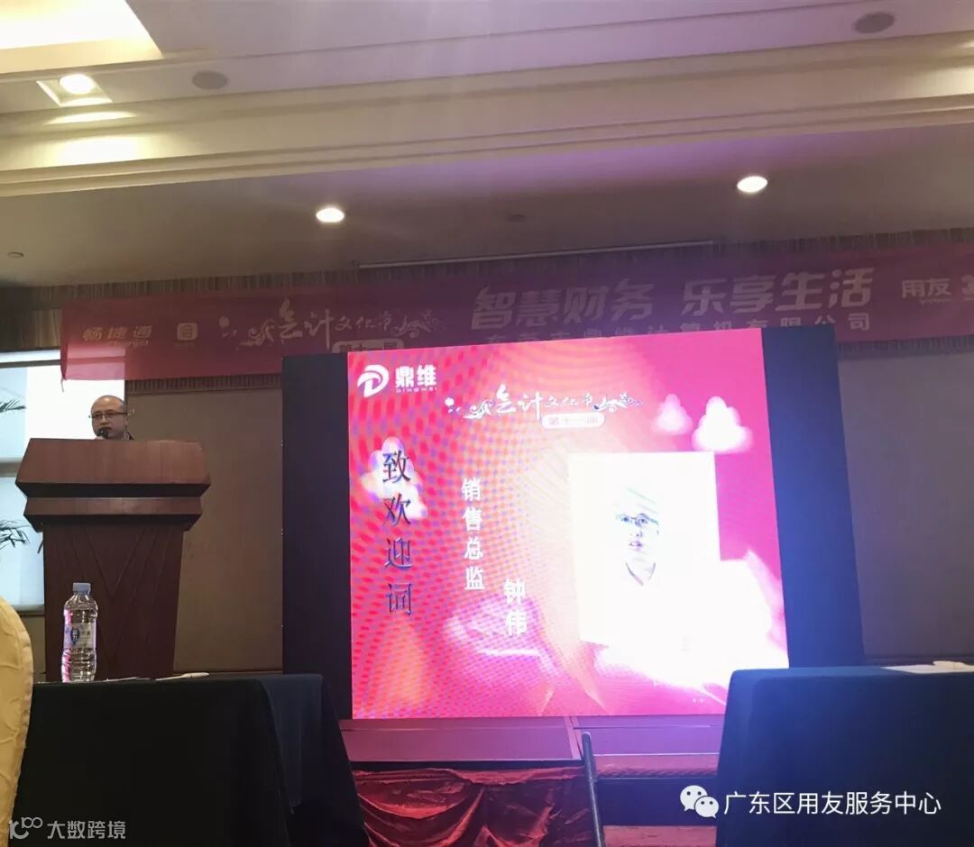 会议开始,由销售总监钟伟先生致欢迎词,欢迎大家来参加一年一度的会计文化节,感谢各位新老客户一直以来的支持与厚爱!并介绍了现场协助的同事,及默默服务售后专业团队。