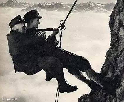 ▲德国国防军山地猎兵的医官将受重伤的战友从阿尔卑斯山顶运下,许多山地部队士兵都称得上登山运动员了