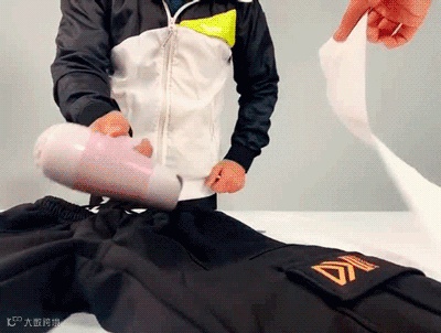 将吹风机开到最大风速隔着裤子的面料吹