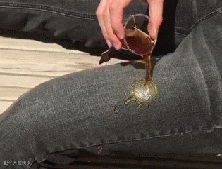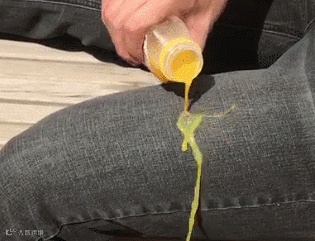 咱们咱来试试黄色的污渍--橙汁,会发生什么呢?