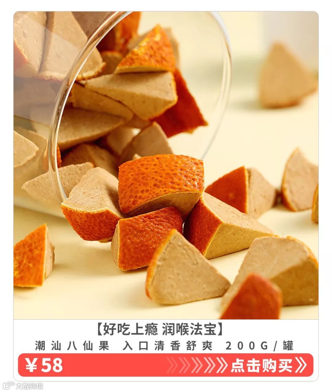小编亲测体验:潮汕八仙果是广东人日常润喉的小法宝,八仙果又名陈皮八仙果,是一种小零食,含在嘴里,清凉回甘,喉咙不舒服的时候,你该来一颗。