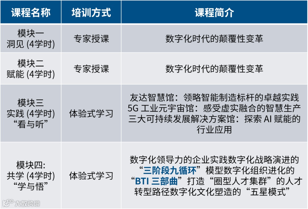 课程贯穿实战练习,从数字化战略制定到组织进化、人才转型、文化塑造,保证转型成果落地生根。
