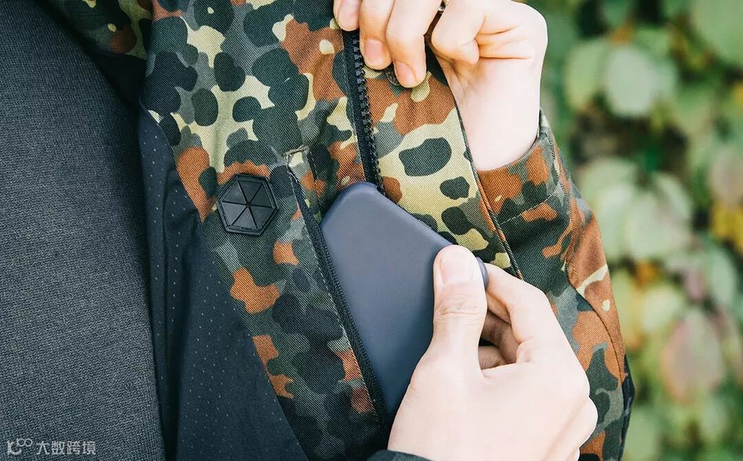 左侧内怀设计有拉链兜,22cm*13cm大口袋,放置钱包护照等私密物品,口袋还有一个橡胶耳机线出口,冬天听歌不用担心恼人的耳机线了。