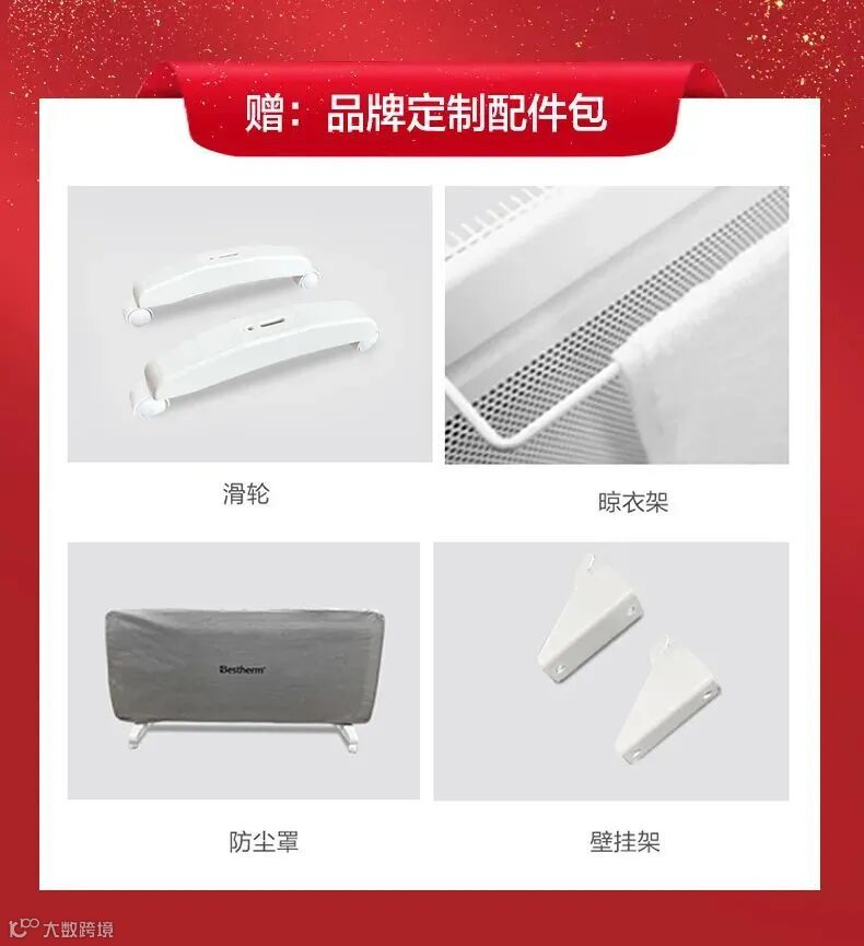在家庭多用途上也考虑到了,产品还配赠了一体式晾衣架,又能取暖又能晾衣服,两不耽误,衣服还干得快!
