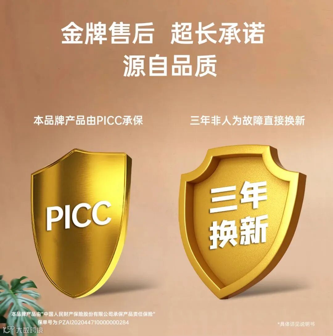 五是售后政策很贴心和无忧,若三年内非人为故障坏了真接换新机,这在电器行业是很少见的,同时还有PICC承保。