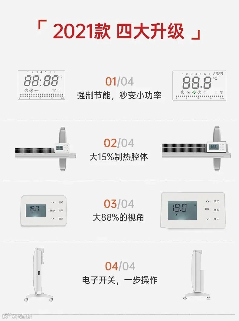 1秒开机,3秒开始发热,10秒全速制热开始全屋温暖,家不会是冷冰冰的屋子了!