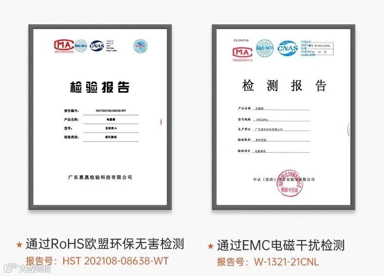 产品通过了“欧盟环保无毒RoHS认证”和“防电磁波干扰EMC认证”。