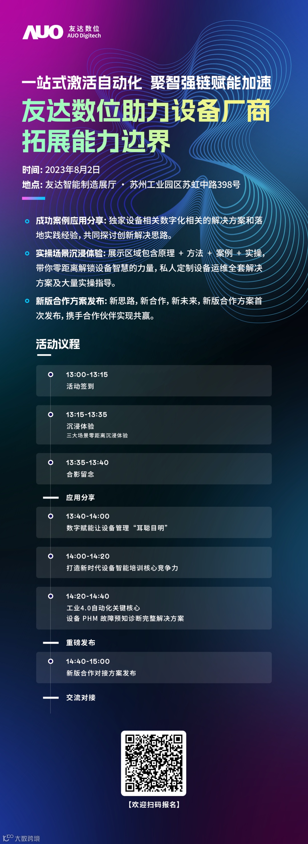 8 月 2 日(星期三),我们将举办一场设备厂商智能化改造对接交流会,助力设备厂商拓展能力边界,与大家共同探讨设备智慧带来的无限可能。