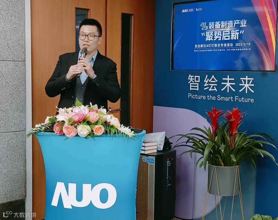 今天,我们和数字化转型解决方案领域的领先服务商友达数位一起举办联合专场活动,也是希望借鉴友达数位在行业上的各种经验,结合钉钉自身的平台和能力,给大家展现一个不一样的钉钉和友达。再次感谢各位企业家的莅临!”