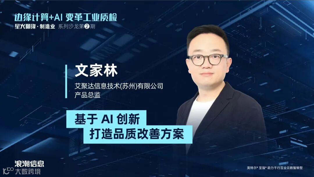 11 月,由浪潮信息主办的星火聊缘·制造业系列沙龙于线上开展,以 “边缘计算+X,打通智能制造最后一公里” 为主题,云集制造业领域边缘方案专家,聚焦 AGV 物流自动化、工业 AI 质检、数据采集分析、工业软件控制的边缘承载等制造业领域关注的话题,直击制造业数字化转型痛点。艾聚达受邀参与并将于 11 月 10 日线上沙龙分享基于 AI 创新的品质改善方案。