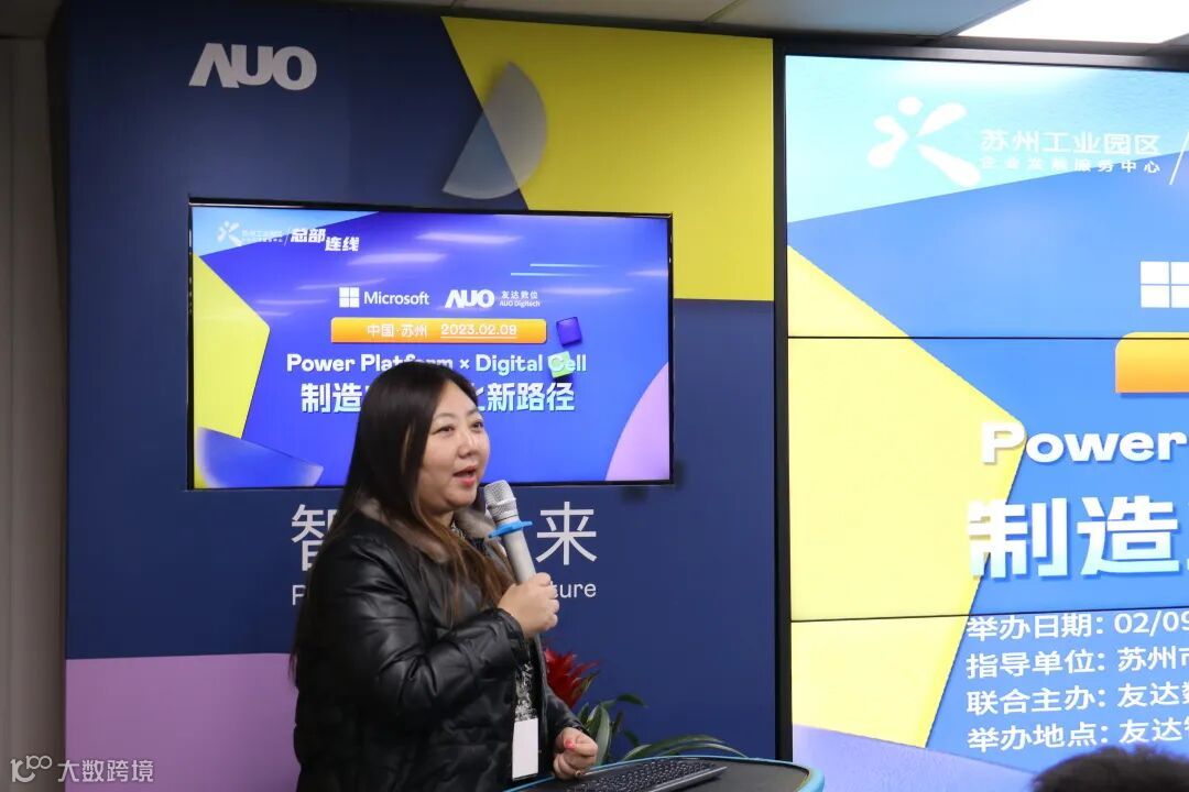 友达数位总经理赵丽娜作为主办方代表发表欢迎致辞。赵总对于园区企服中心选择友达数位作为 2023 “总部连线”系列活动的首站表示了诚挚的感谢。
