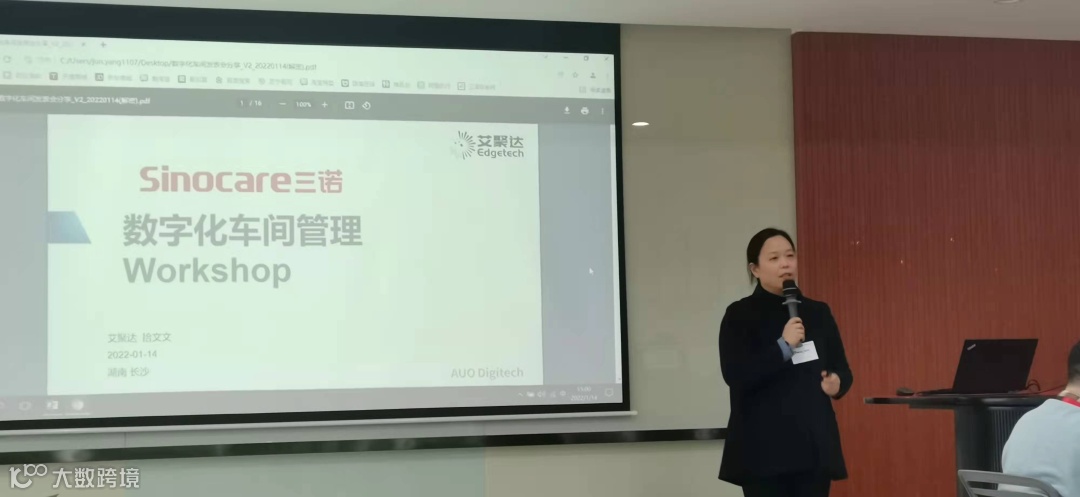 2022 年 1 月 14 日下午,三诺生物 & 艾聚达《“金”益求精》数字化车间运营中心项目结案发表会在长沙三诺生物生产中心隆重举行。三诺生物生产中心李经理、田经理等各职能模块负责人及车间主管,艾聚达大数据团队拾总监、陈经理等出席了结案发表会。