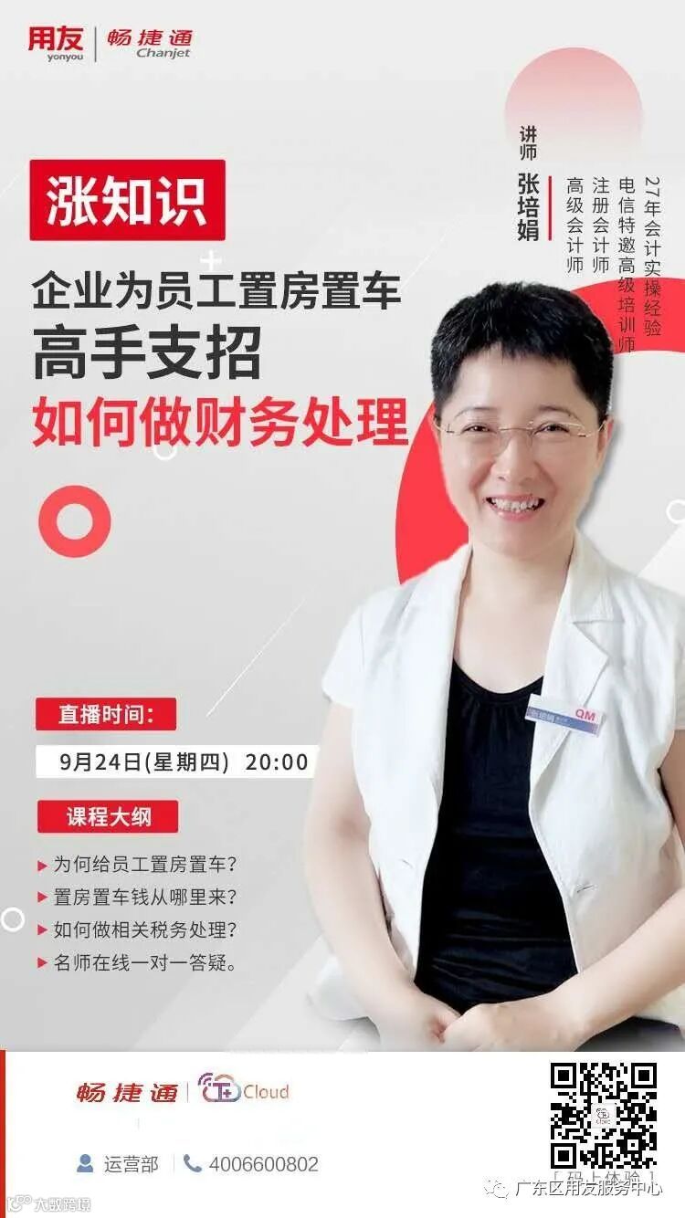 9月24日(周四)晚20:00 高级会计师 张培娟 老师给大家分享《企业为员工置房置车,如何做财务处理》 。