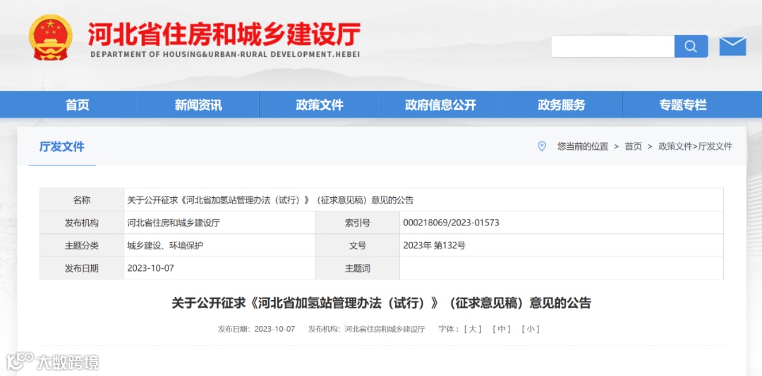 10月7日,河北省住房和城乡建设厅发布《河北省加氢站管理办法(试行)》(征求意见稿)。文件指出,“县级以上人民政府应当将加氢站纳入国民经济和社会发展规划,统筹协调本行政区域内加氢站工作”,这意味着河北省拟正式将加氢站建设运营纳入社会经济建设重心,且将成为地方政府的指标之一。