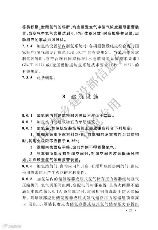 近日,据中华人民共和国住房和城乡建设部关于发布国家标准《加氢站技术规范》局部修订的公告(中华人民共和国住房和城乡建设部公告2021年第42号),由中国电子工程设计院有限公司主编的《加氢站技术规范》GB50516-2010(2021年版)正式发布,自2021年5月1日起实施,经此次修改的原条文同时废止。