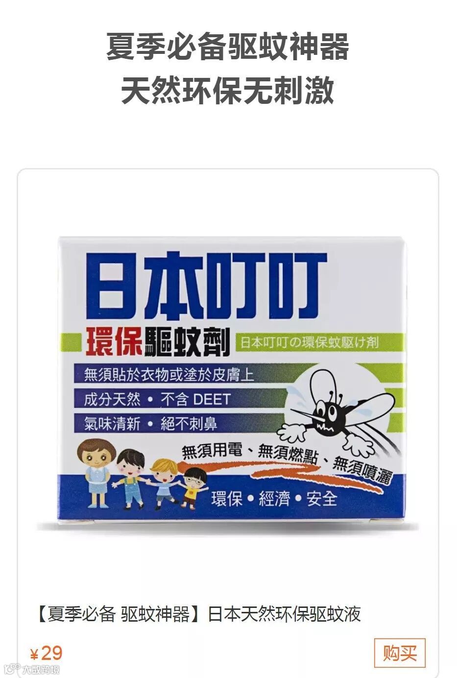 无需点燃,无需用电,无需喷洒。随手一摆就驱蚊,一瓶可用三个月。