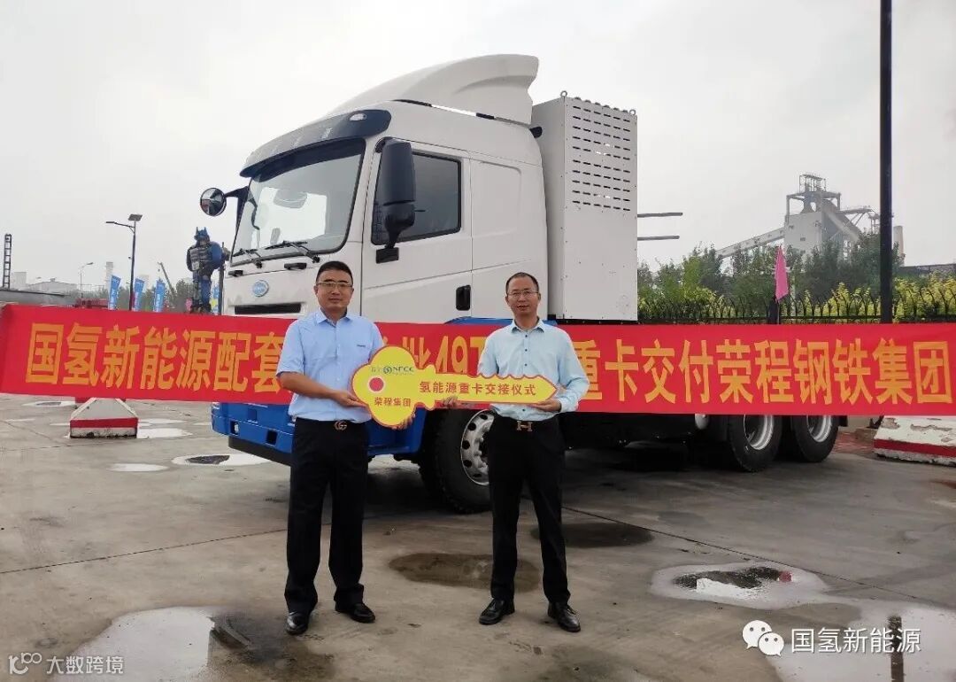 活动现场,还举行了氢能重卡交接仪式,此次交付投运的氢能重卡有由国氢新能源联合开沃新能源共同开发,搭载国氢新能源自主研发生产的新一代大功率燃料电池动力系统HG120的49T氢能重卡。