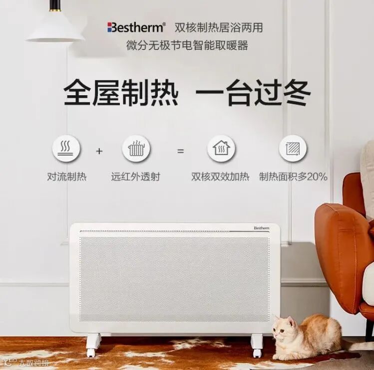 制热效果强:对流+透射双核双效制热,3秒发热,可达到地暖般全屋温暖。