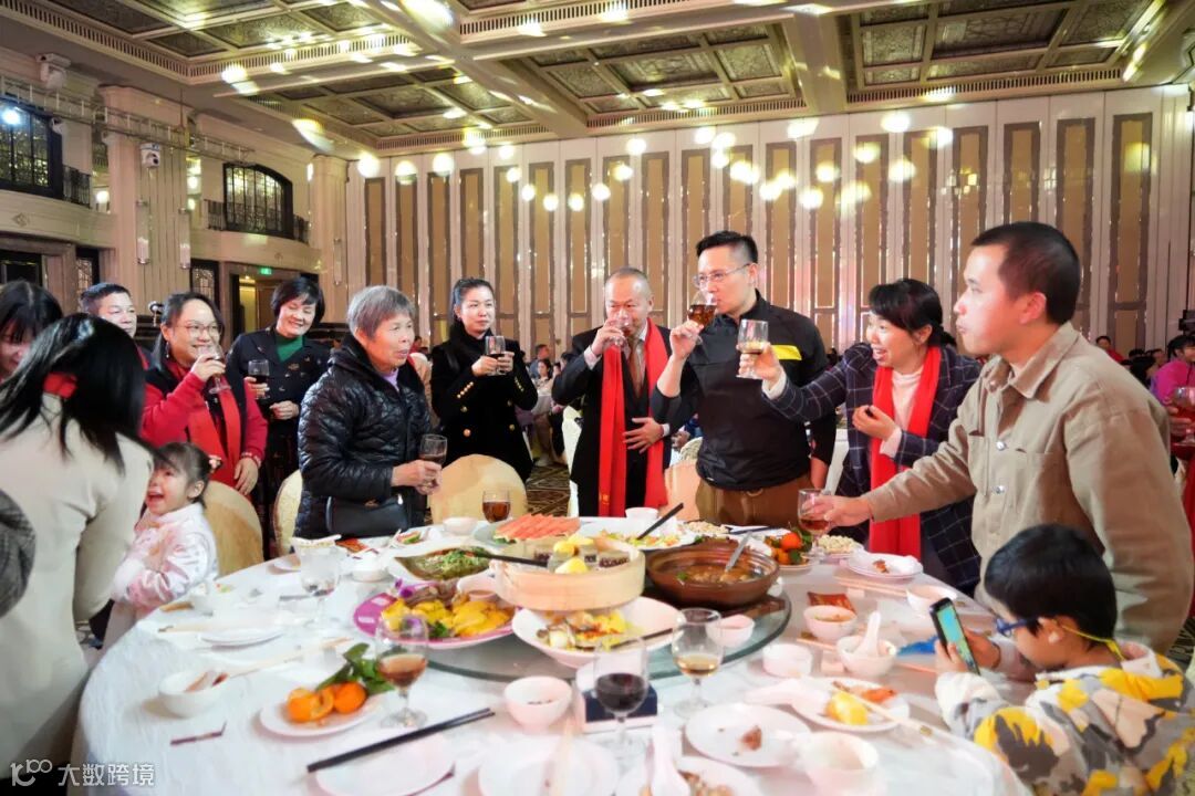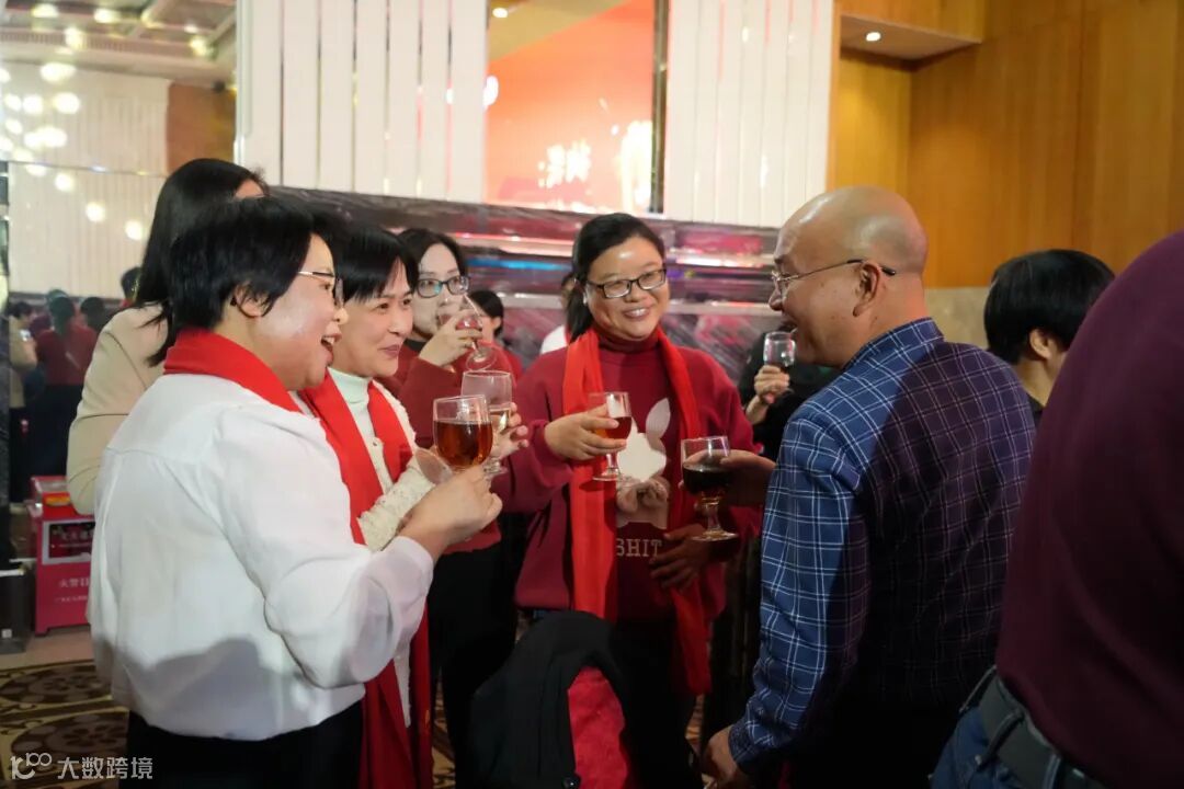 致辞完毕,董事长与管理层在台上举杯同庆。敬大家在默默付出当中,相互无私的信任;敬所有在场的伙伴,让我们团结一心,迎接繁花盛开的未来!