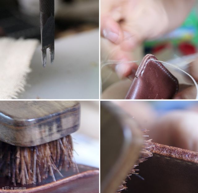 裁皮、粘合、划线、打眼、缝合、封边、磨边、整形、上油
