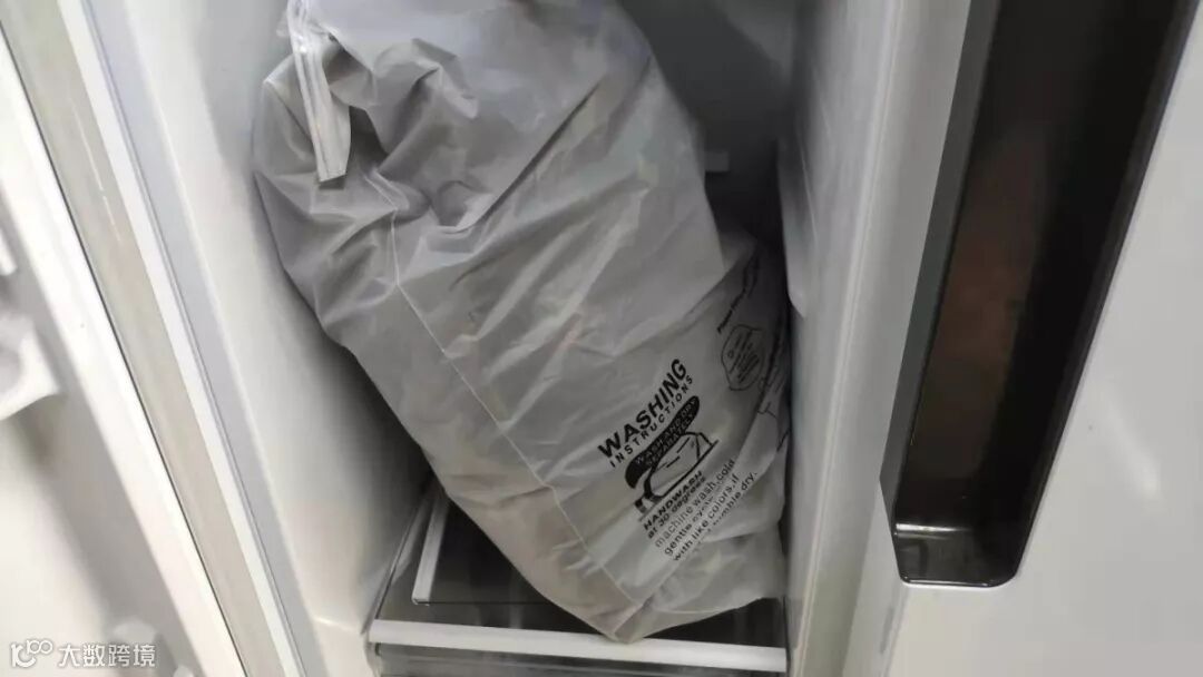 将大衣叠好放入包装袋,再放入冰箱冷冻室中