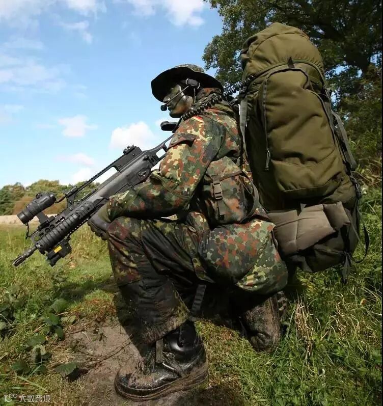 一个训练合格德国山地士兵是用大量欧元堆起来的,他们单兵装备多达数百件,大到枪械防弹衣,小到内衣内裤,处处体现着汉斯的豪份儿,其中最具代表性的就是这身德斑迷彩,它继承了德国军服美观实用的特性,在德国军队的迷彩中,人气极高,也是一众德军粉的必备之物