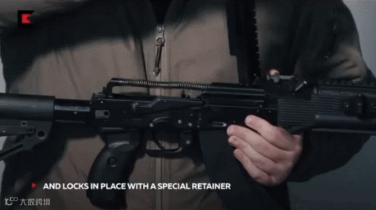 除此之外,AK200系列最大的外观特征就是使用了类似美国AR步枪的伸缩枪托,但显然是做了改进的,因为AK200的枪托除了像AR那样伸缩之外,还可以向左折叠,这可是枪托内藏复进簧的AR做不到的。