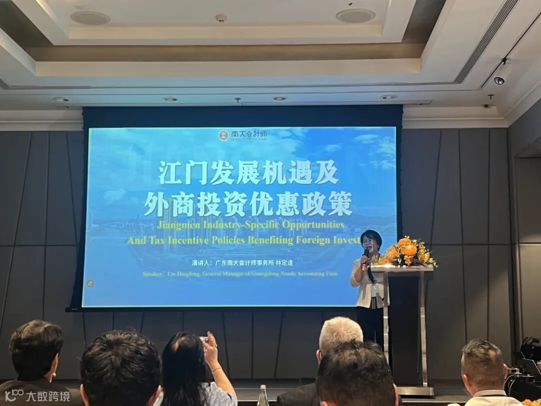 其中,广东南大会计师事务所总经理林定逢作《江门发展机遇及外商投资优惠政策》分享,向来自80多个国家或地区的财税同行介绍江门的营商环境及投资优惠,助力江门招商引资。她提到,江门作为粤港澳大湾区重要节点城市,其区位优势、扎实的工业基础、便捷的交通、税收优惠政策等吸引了来自大湾区其他城市和长三角等地,以及外商投资企业和港澳台企业扎根本地发展,共享机遇。